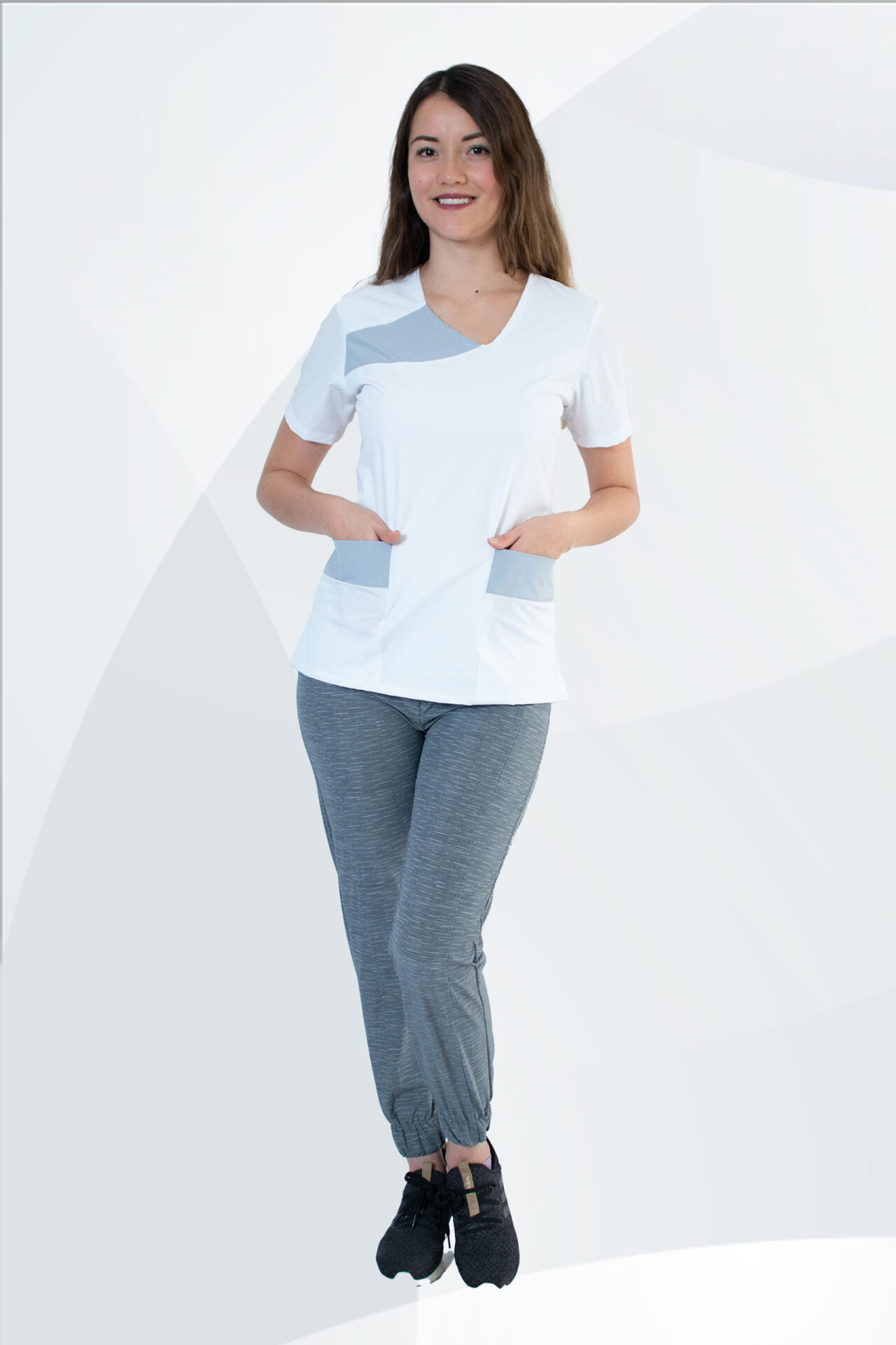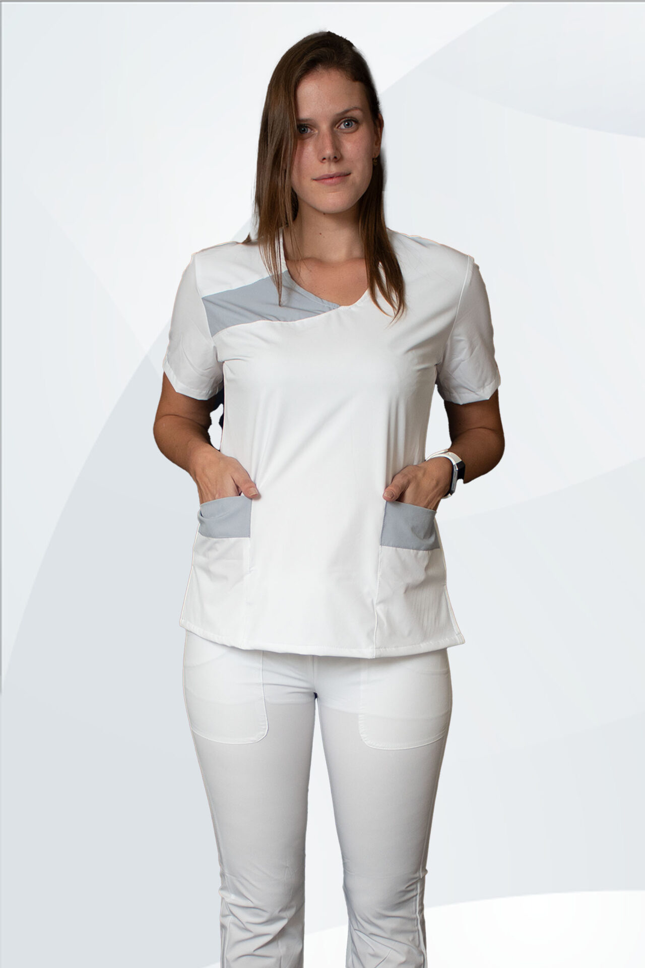 Conjunto traje medico Modelo Yolys combina la filipina Yolys con cualquiera de nuestros pantalones para dama, escoja, modelo, talla y color, bies de combinación tejido Repelente y Bi-Spandex que permite la elongación en ambos sentido   Se puede combinar tallas.